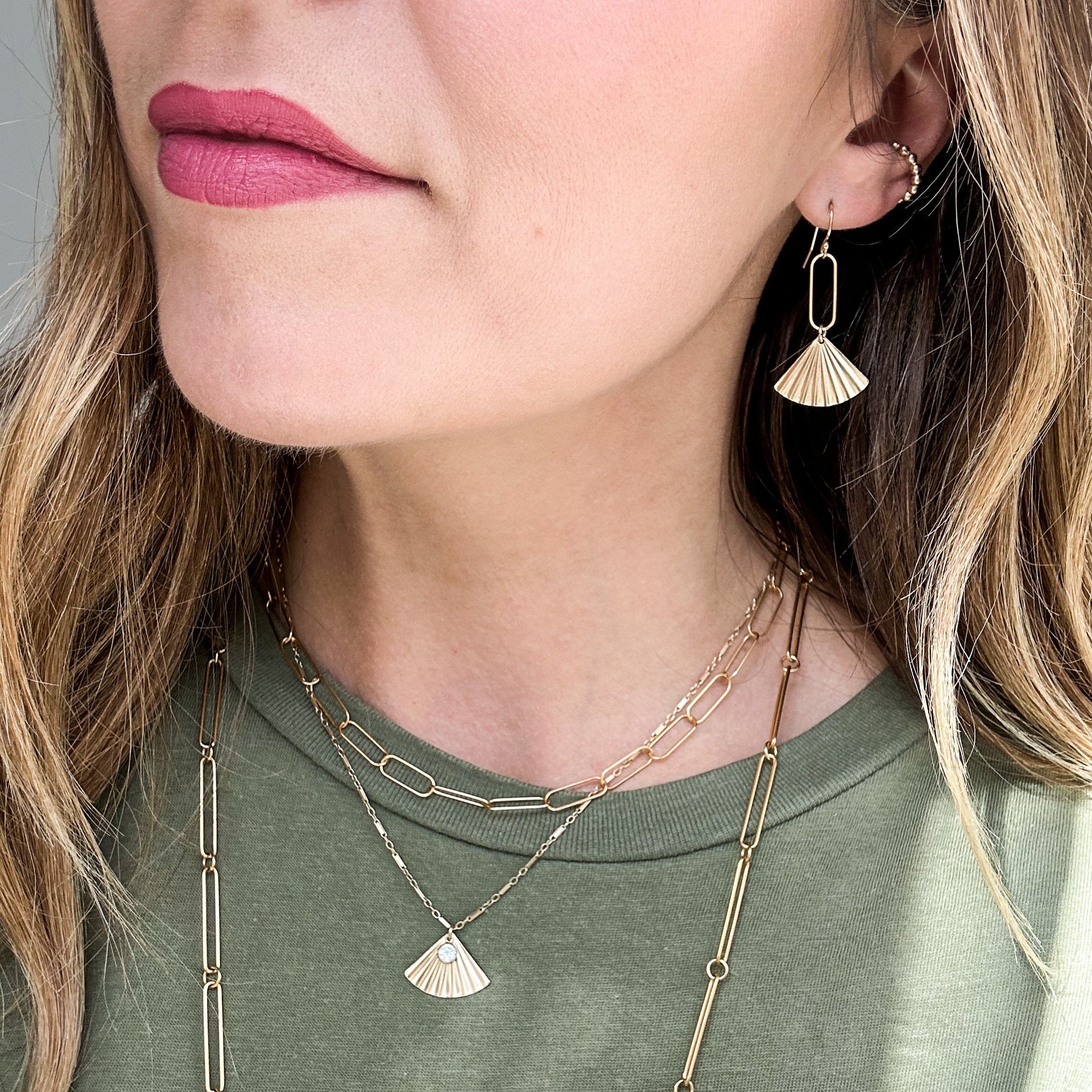 fan link drop earrings