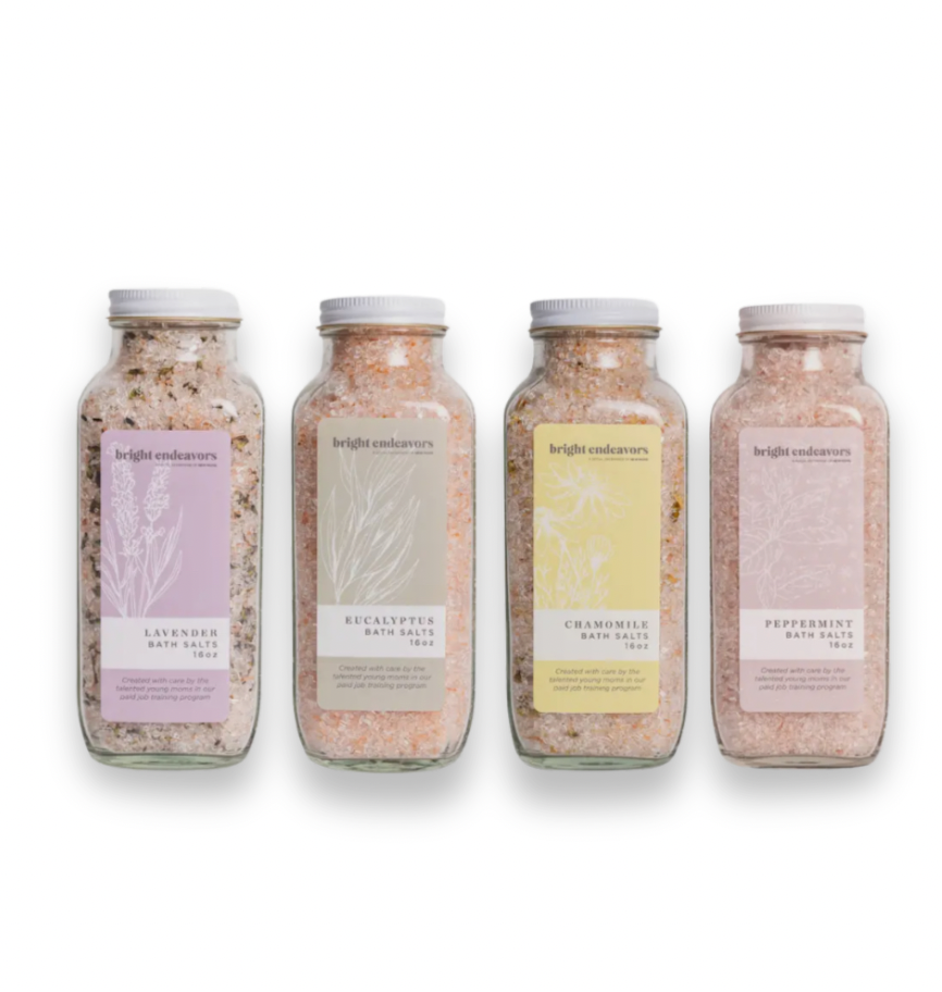 - these soaking salts were blended with care by the talented young moms in the bright endeavors paid job training program