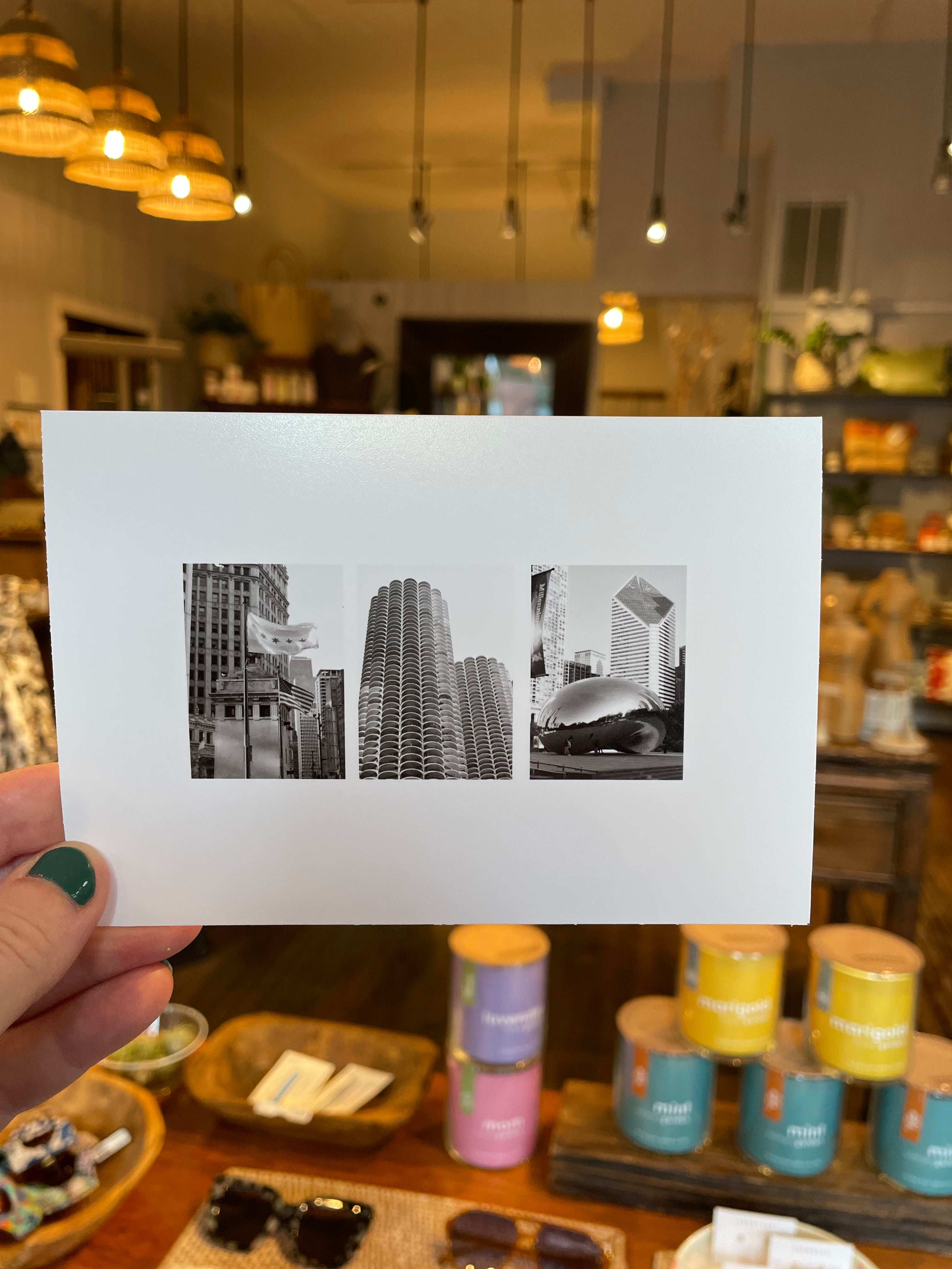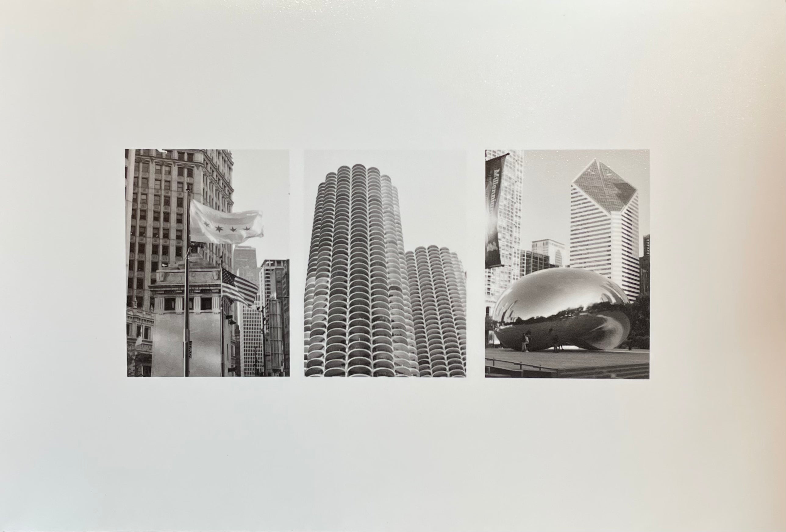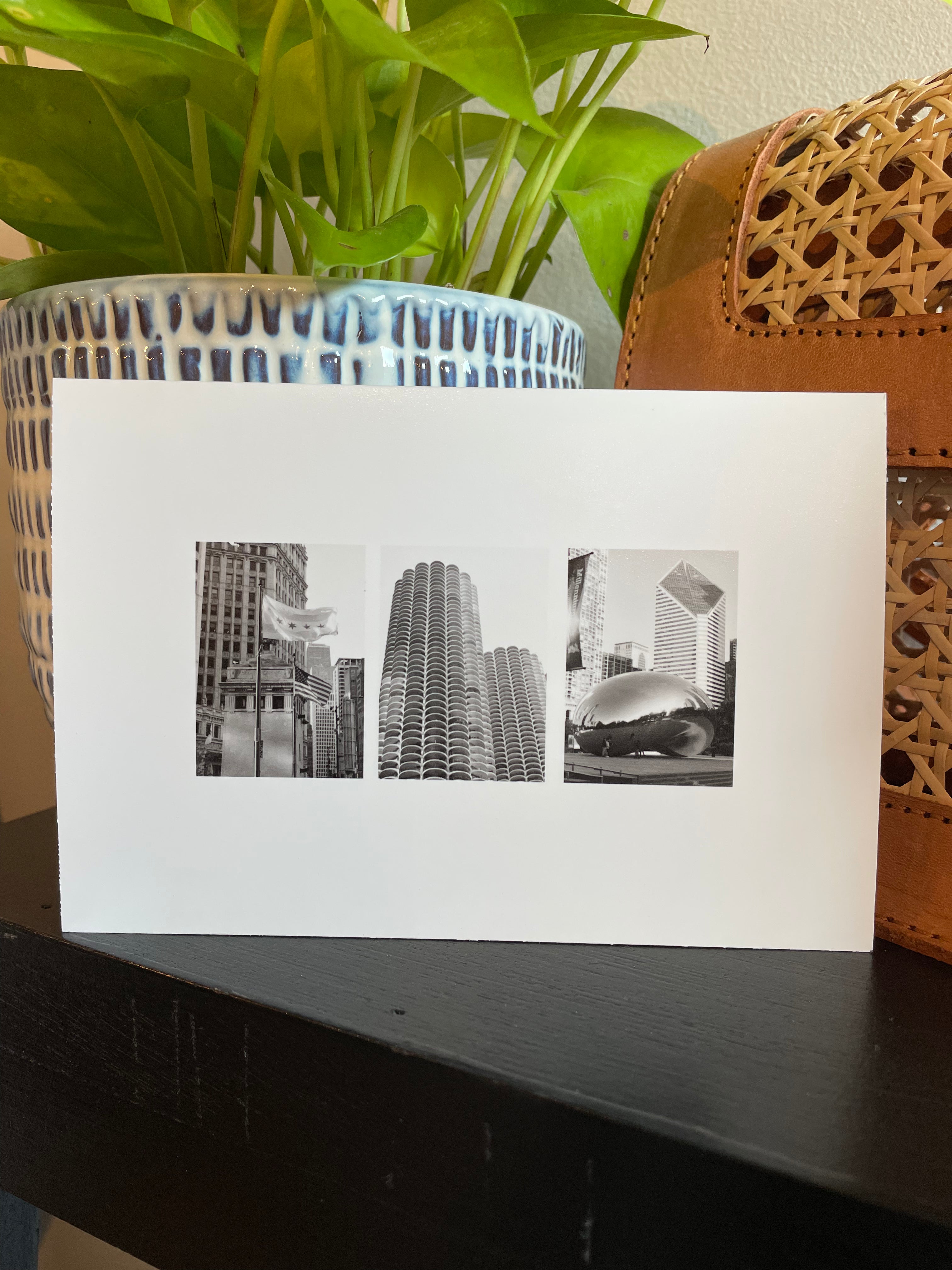 Celebrate the Windy City with this 4x6 photo collage featuring three iconic Chicago landmarks in timeless black and white.