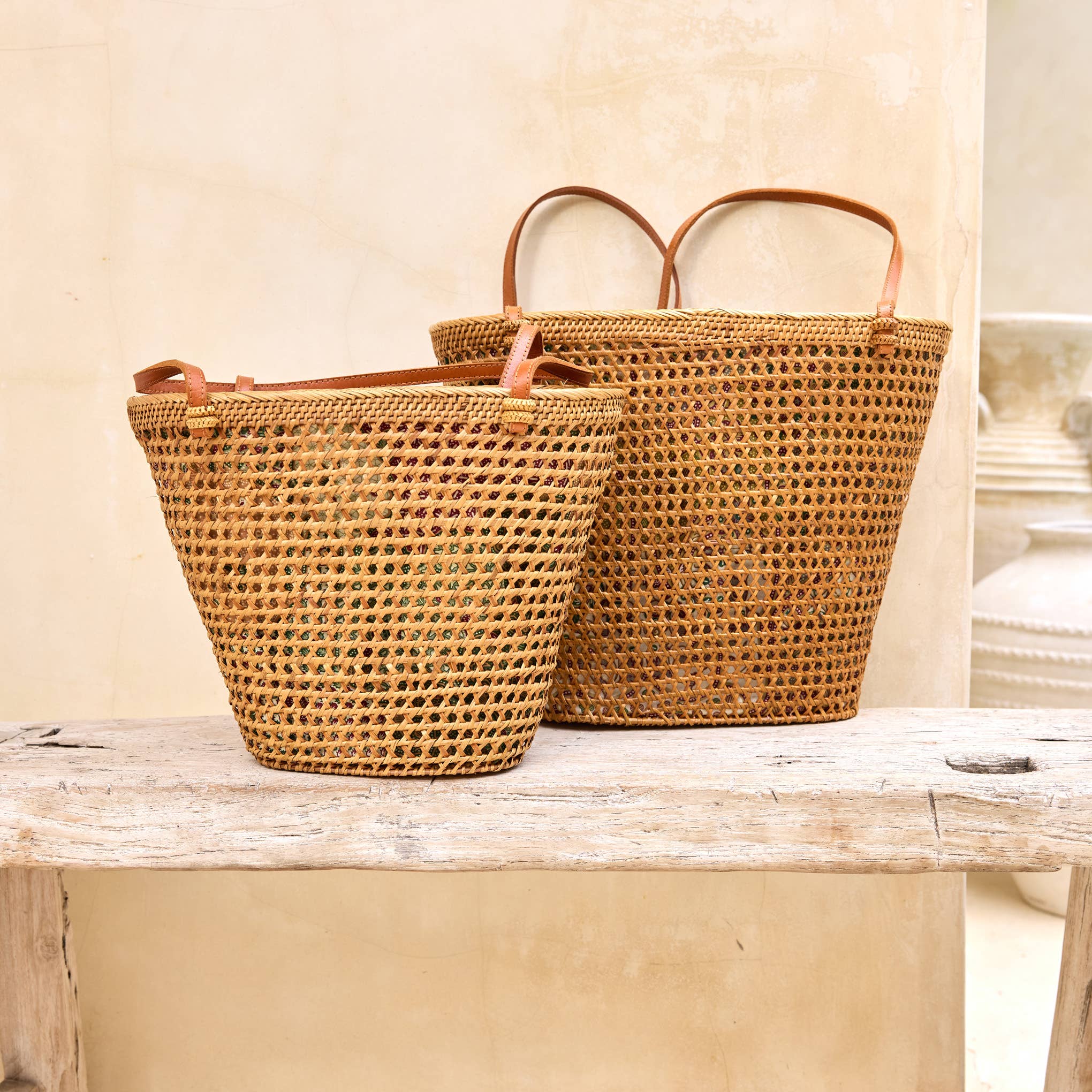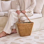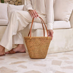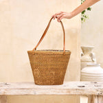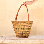The beautiful Ata tote bag is handcrafted by Balinese women working from their homes in the Tenganan Village in Eastern Bali. After the purses and bags are woven, they are dried under the sun, then hung over a fire for several days. The smoke and heat from the fire gives them their golden color and cures them, making them hard and durable and ensuring they will last a lifetime.