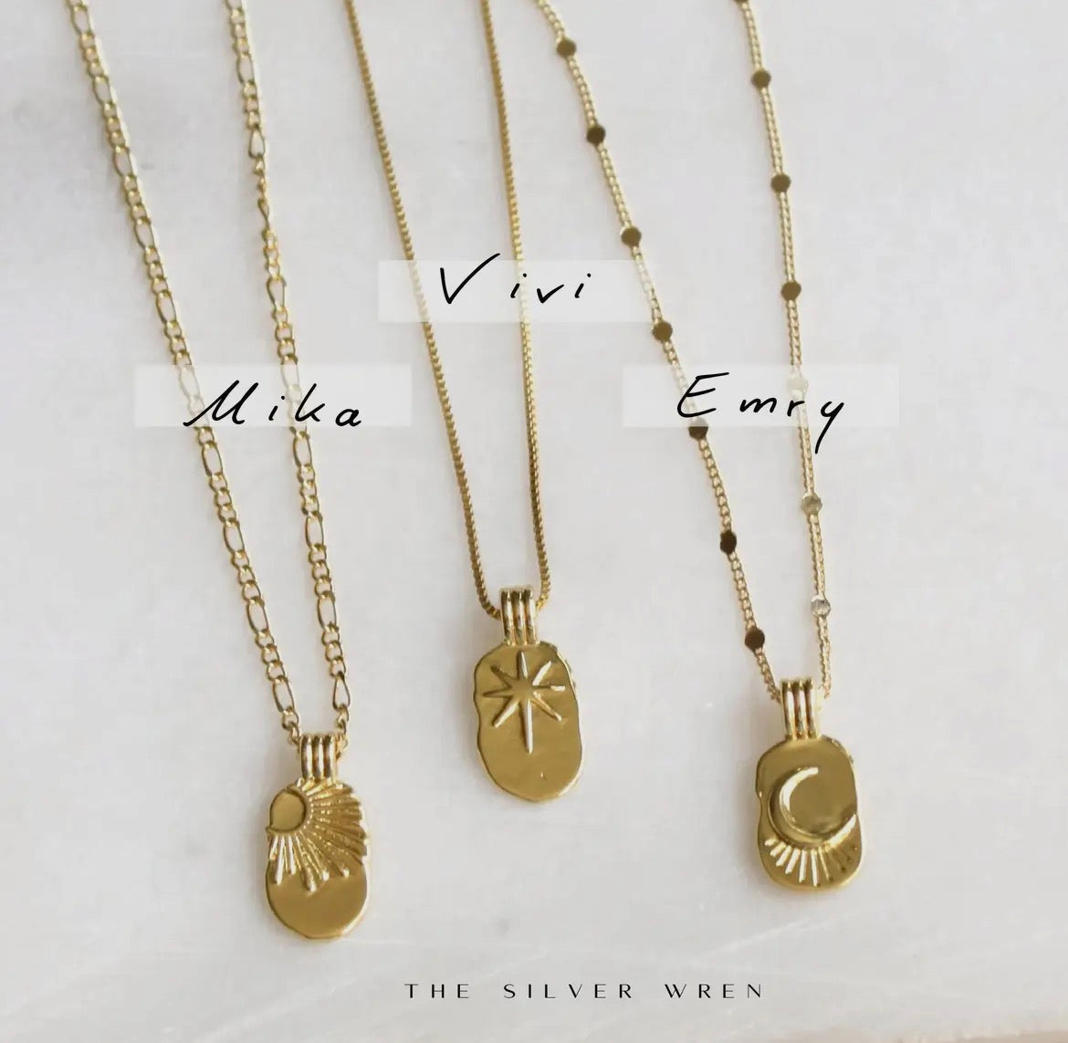 Handcrafted with sun, moon, or star motifs, this oval pendant shines on its own or layered for effortless style. A thoughtful gift or a special piece to wear every day.