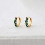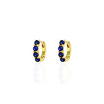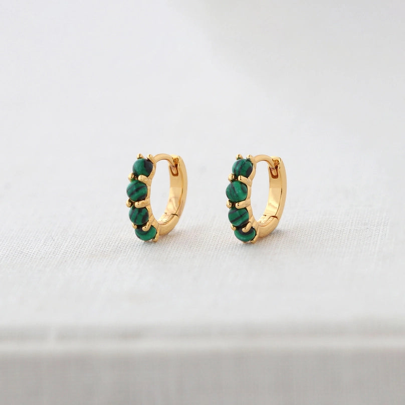 These huggie style hoops feature four 3mm gemstones set in 18k gold vermeil. Available in Lapis Lazuli or Malachite.