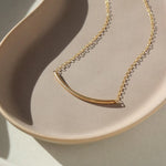 This sleek Minimal Necklace is the perfect finishing touch for any look! A delicate chain balances a minimal rod curved ever-so-slightly to highlight the soft curvature of your neck. Layer this necklace or wear alone for a perfect everyday look!