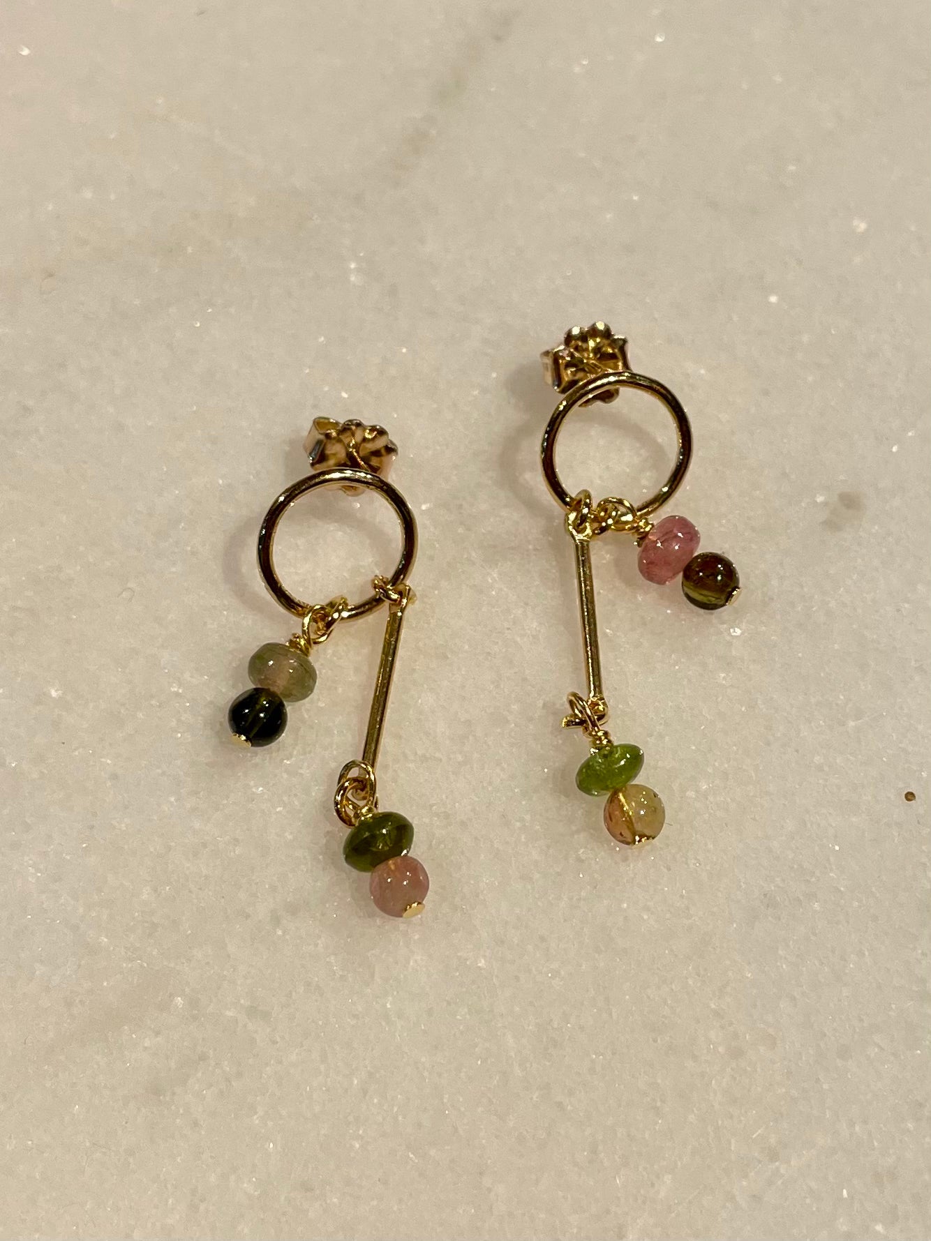 mini charm earrings with tourmaline