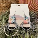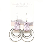 The Christy Hoops features one textured and two smooth dangling brass rings, held together with a colorful leather band.