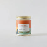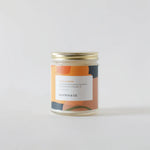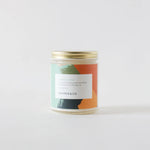 9 oz candle collection comes in modern, straight-sided clear glass jars with a gold lid and an artistic, boldly patterned removable label.