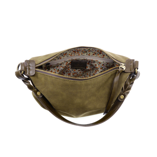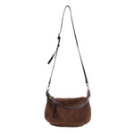 Smooth and supple vegan suede feels soft to the touch in this versatile crossbody style. Featuring a top zip closure accented by our signature logo zip pull, this versatile bag comes with two separate and removable shoulder straps, a short shoulder strap accented with artisanal braided details to give your look a touch of boho luxe style, or a longer, adjustable and removable shoulder strap to wear as a crossbody.