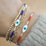 Wear evil eye for protection to shield them from bad luck and harm. The evil eye is a look directed towards someone that is intended to inflict harm, negativity or some form of bad luck.