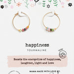 Gold hoop earrings designed with stunning gemstones. Each type of stone has an intention and card with description. The perfect gift!