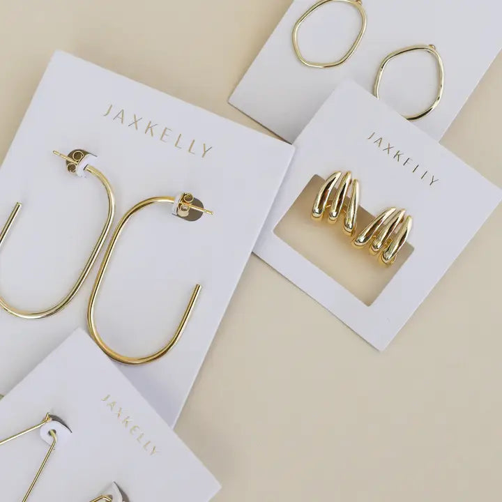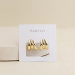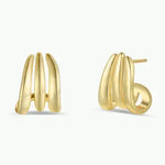 Modern and effortlessly chic, these sculpted triple-hoop stud earrings add a bold yet refined edge to everyday styling. Crafted with smooth, rounded curves, the layered hoop design creates depth and dimension while maintaining a clean, minimalist silhouette.
