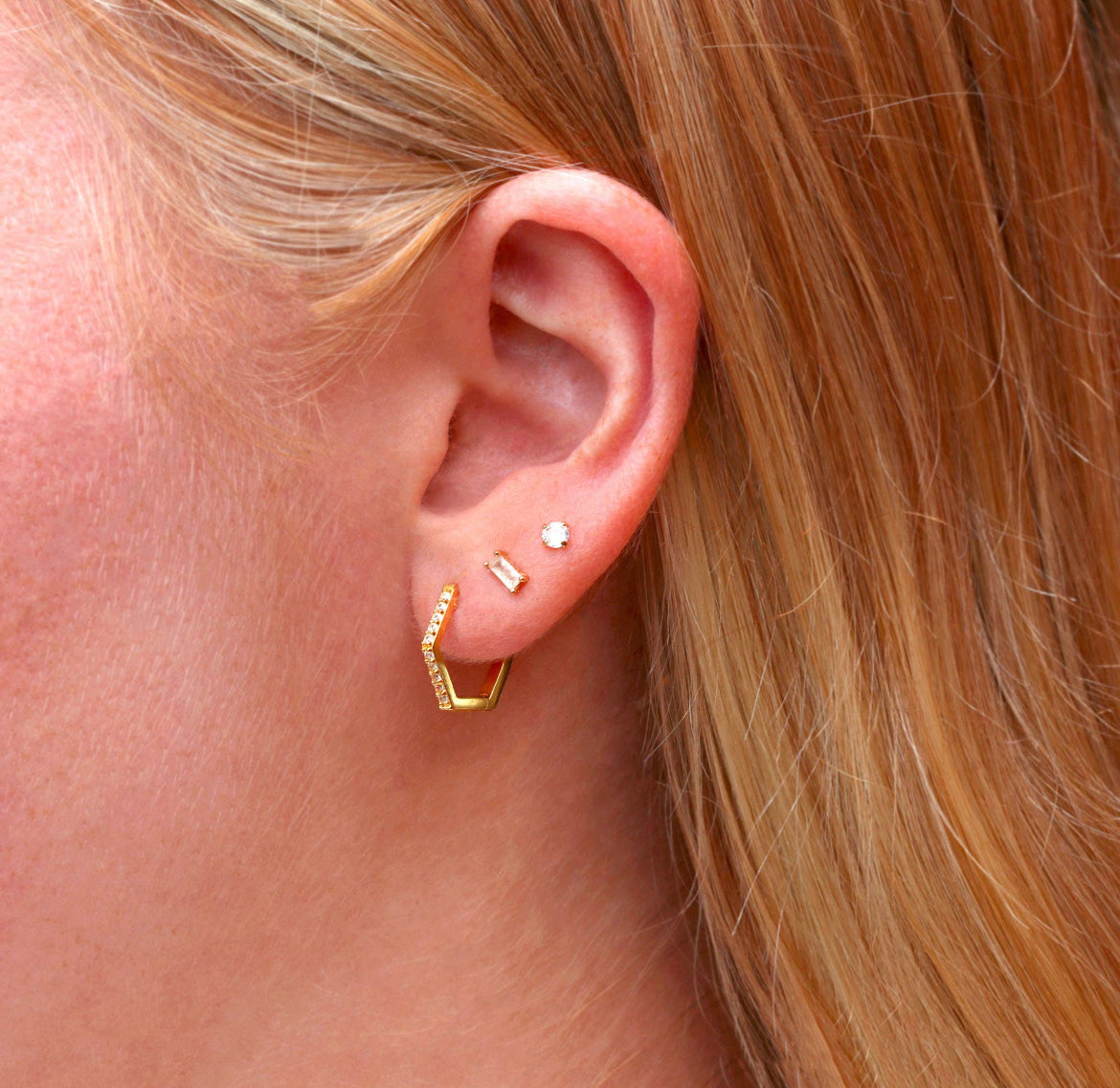Classic style hoop in hexagon shape with hinge. The perfect minimalist hoop earring that hugs your ears.