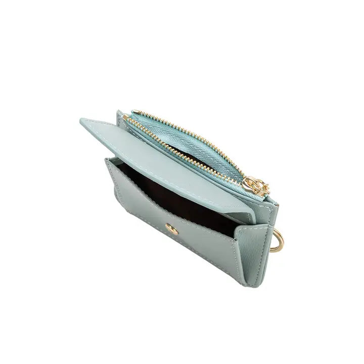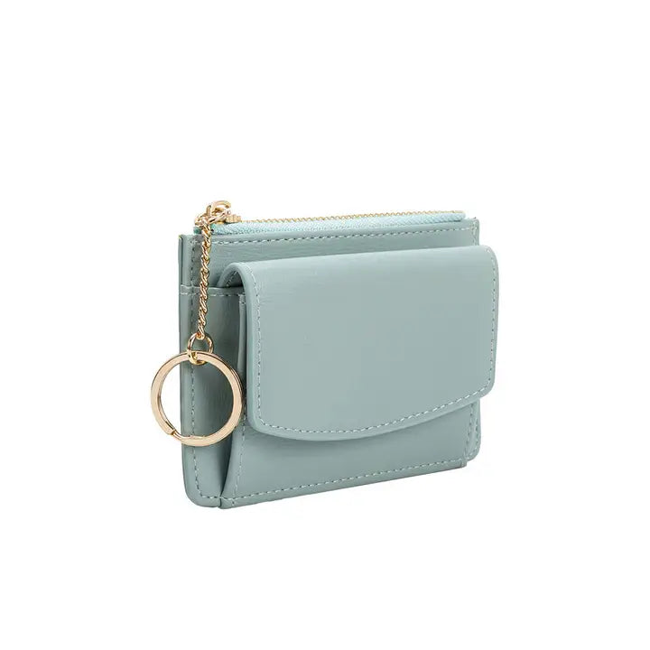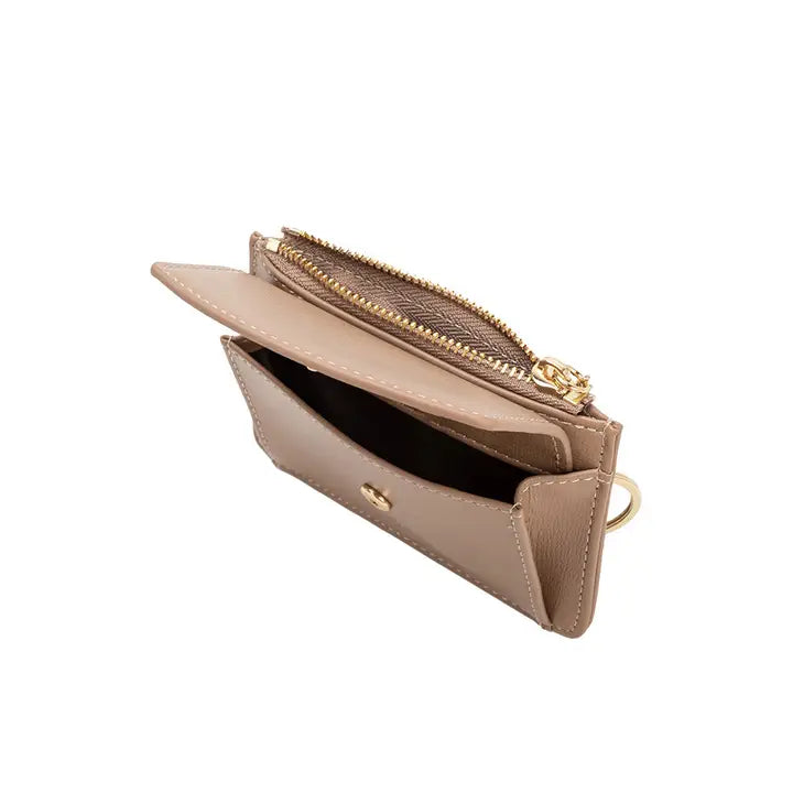 Discover the convenience and functionality of the Kara wallet. With a front coin pocket, attached split key ring, center zip pocket, and three card slots, this wallet helps you stay organized on the go.