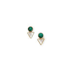 Brass bezel setting with Malachite cabochon stone and tiny open triangle. Malachite is a protection stone, absorbing negative energies and pollutants from the atmosphere and from the body.