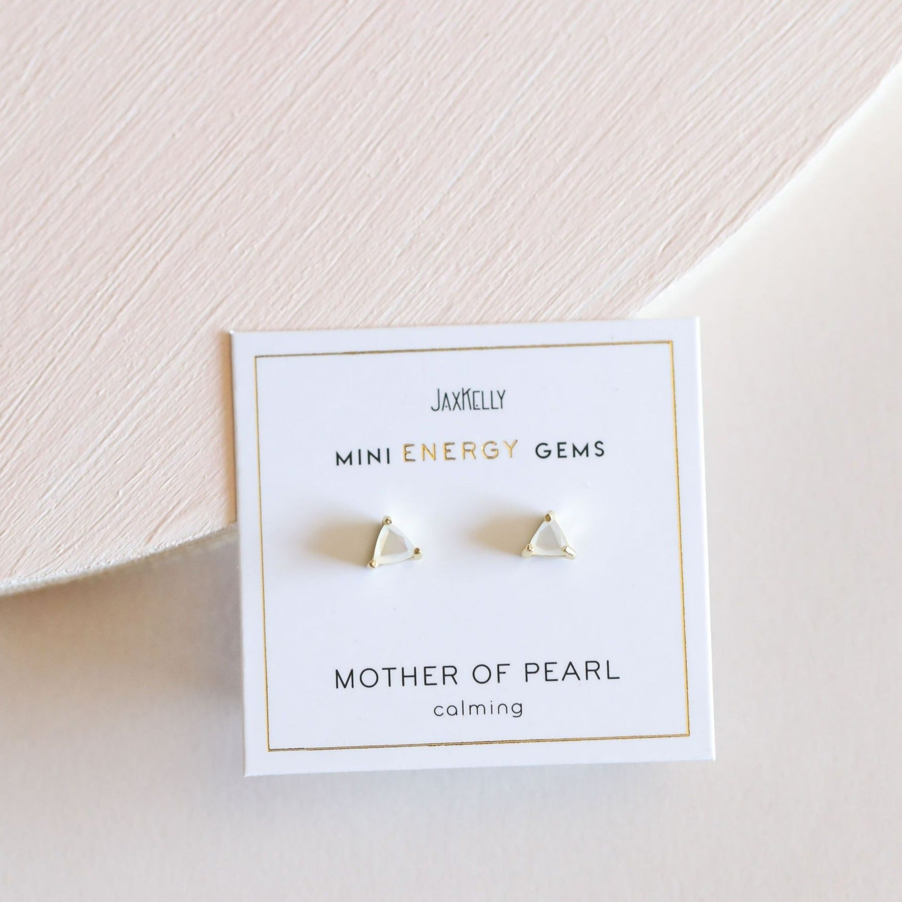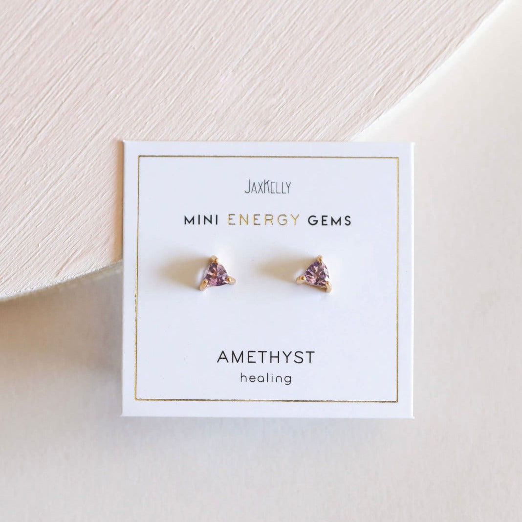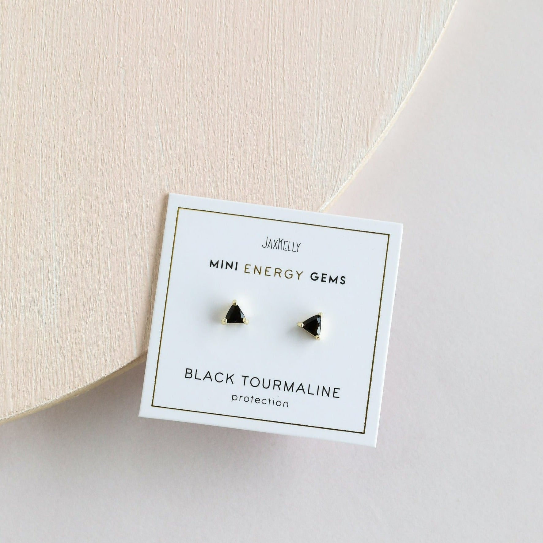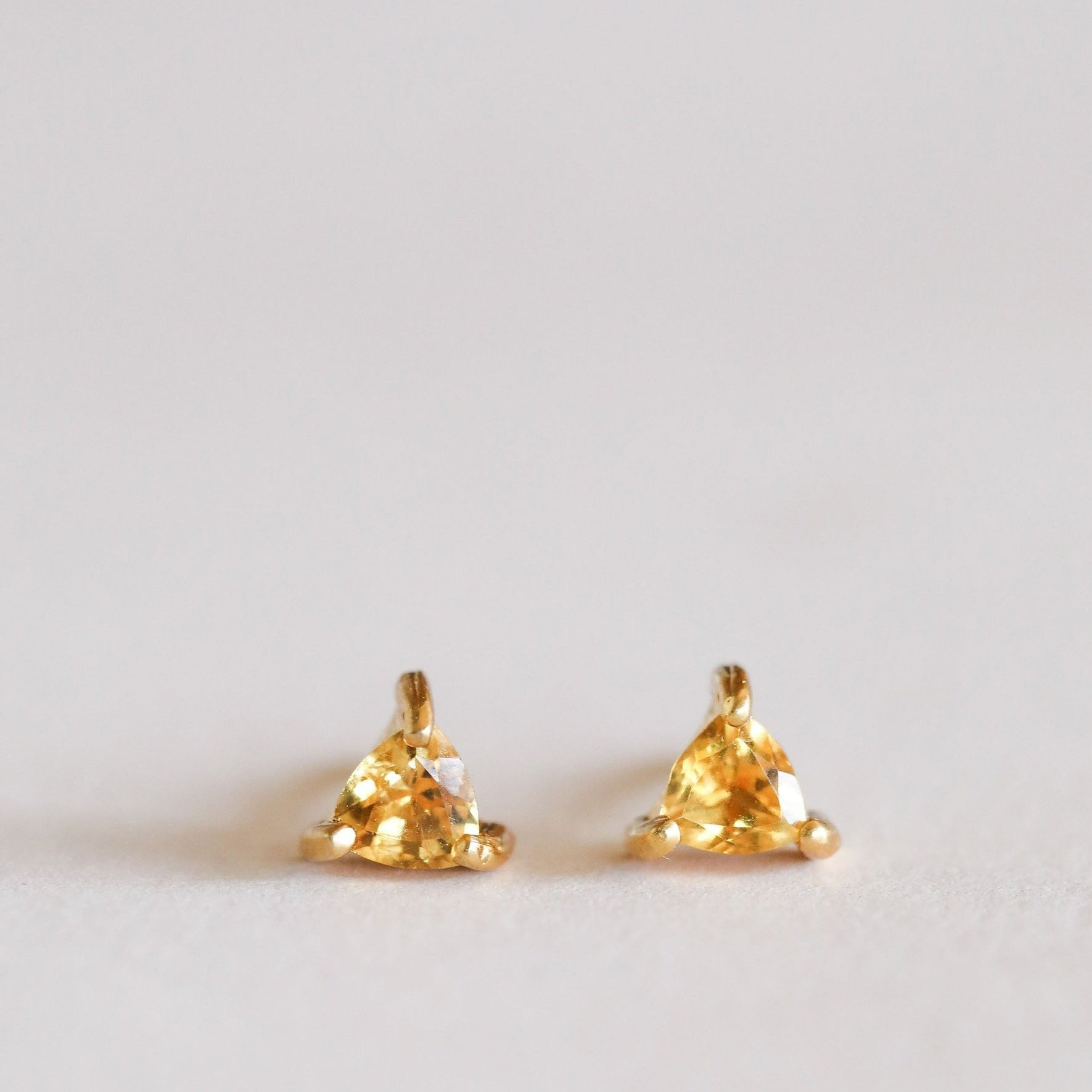 Mini Energy Gem studs feature a triangular stone set in a prong.