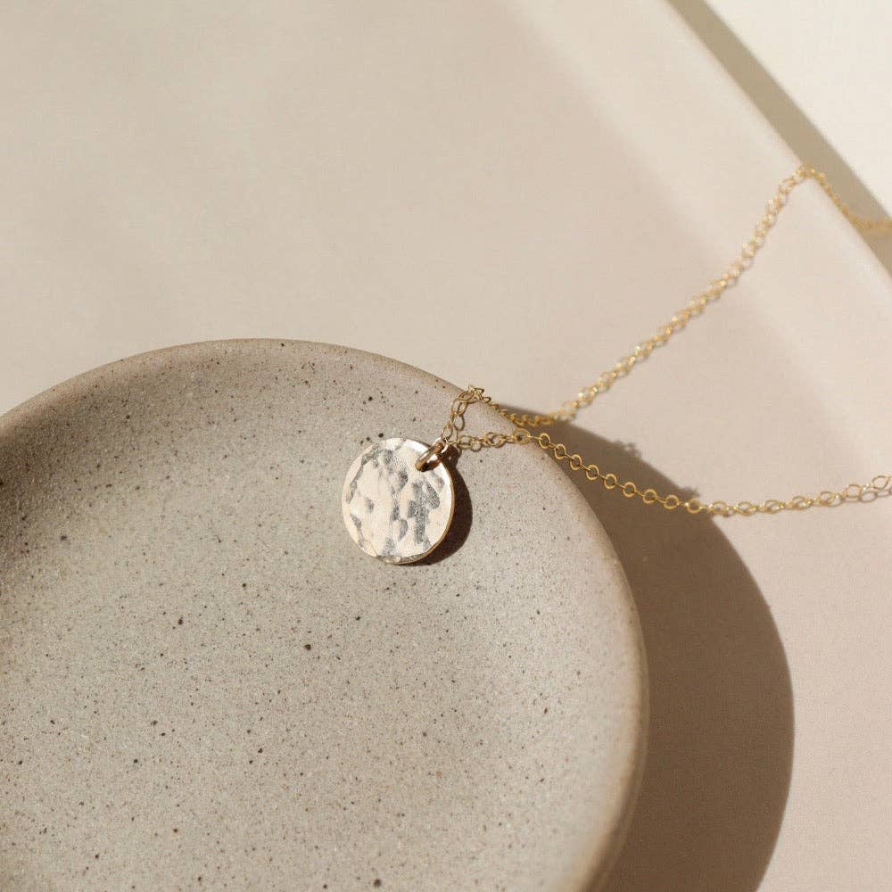 Meet the Moon Drop Necklace, a lightly hammered pendant that's easy to style, with its light catching allure. Wear the Moon Drop alone to create a classic staple and subtle statement necklace or layer it up with other necklaces.