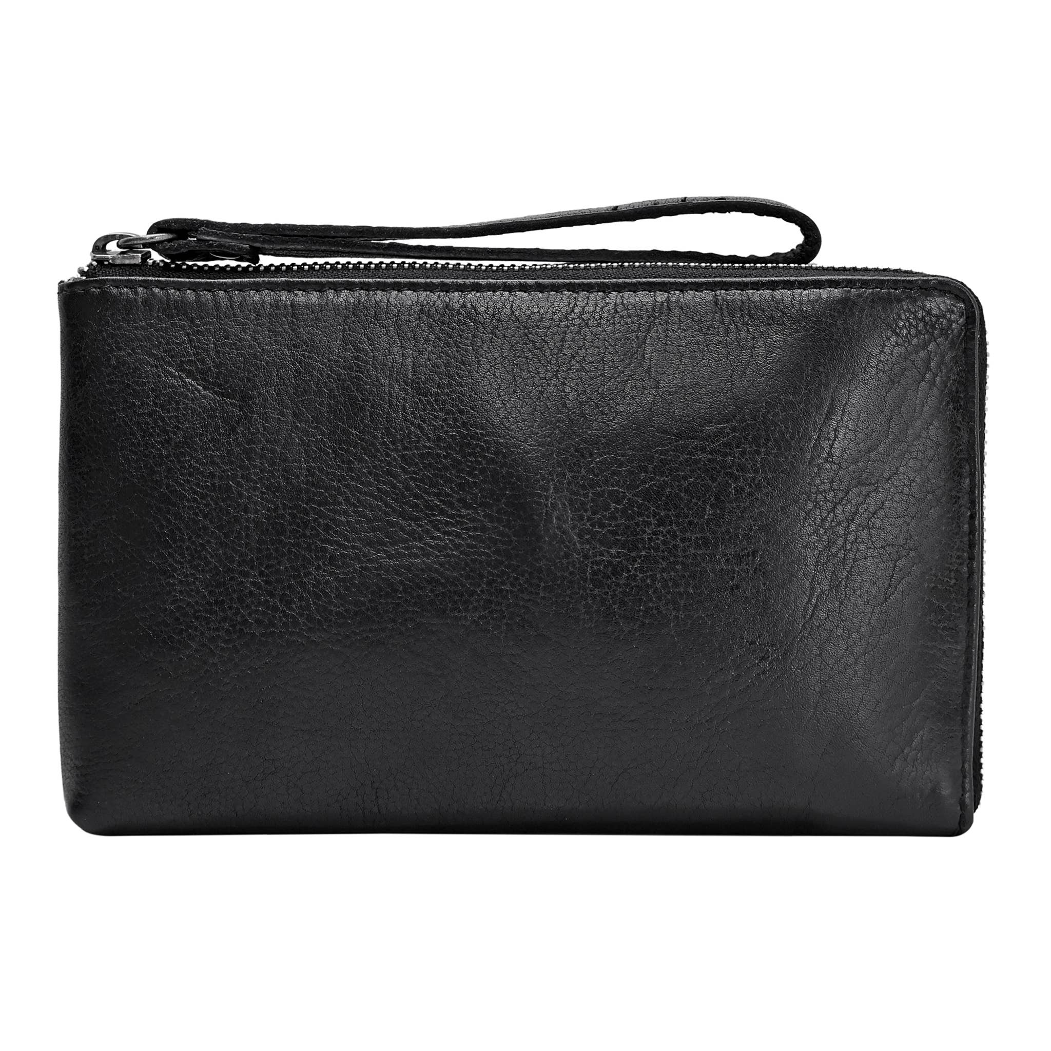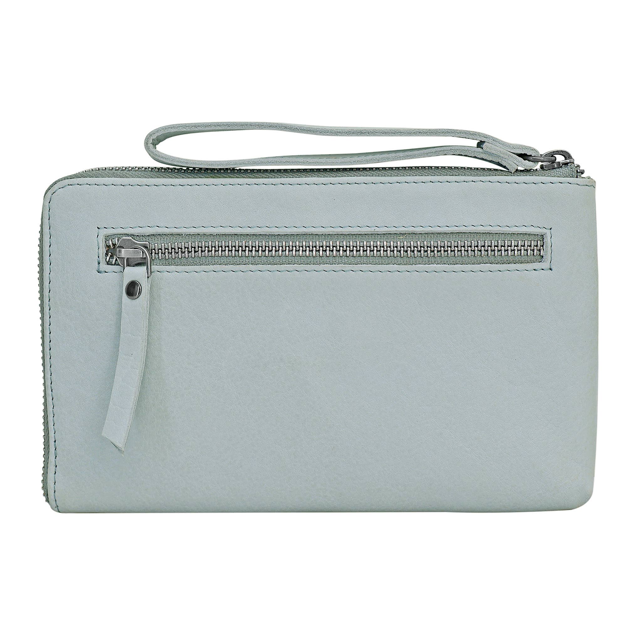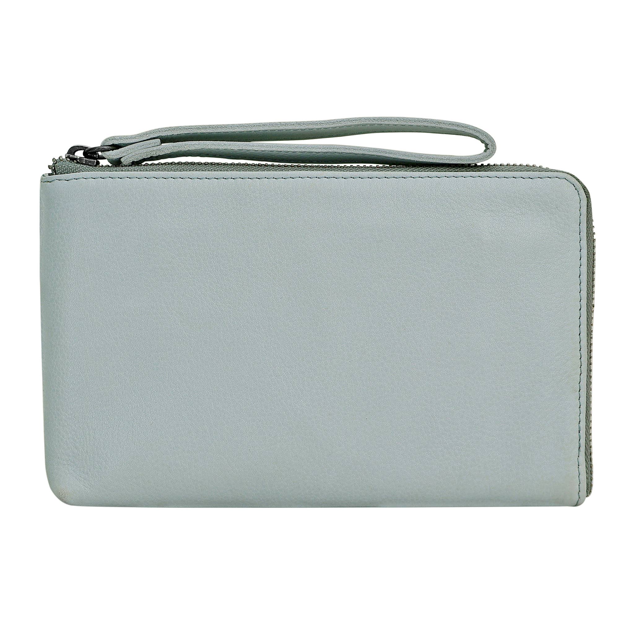 • Exterior wristlet strap and zip pocket
