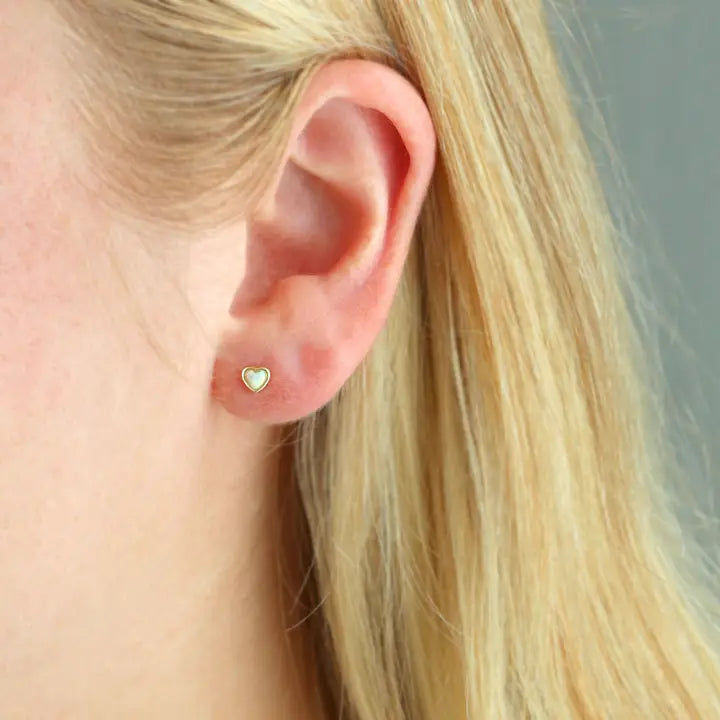 These heart-shaped opal stud earrings are a celebration of nature’s artistry, each stone shimmering with an iridescent play of colors that feels almost otherworldly.