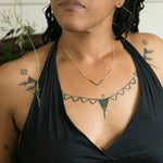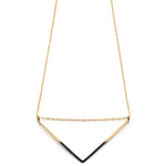 -Patina Dipped Triangle Necklace is made of partially oxidized brass, hangs on 18" gold plated chain.