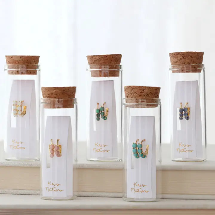 pink opal huggie hoop earrings