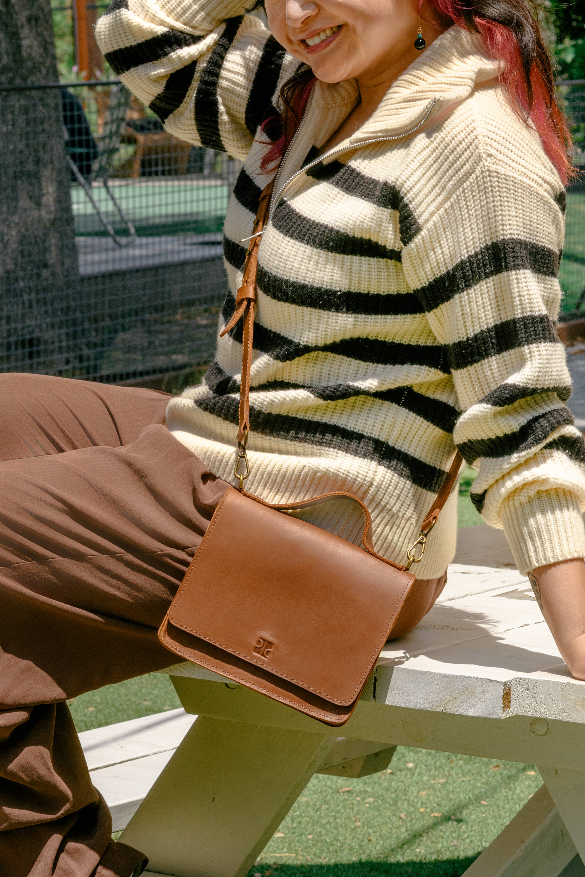 Effortlessly stylish & ultra-functional, the Small Crossbody in smooth Cognac leather is perfect for days when you only need the essentials. With three interior compartments, everything stays organized without the bulk.