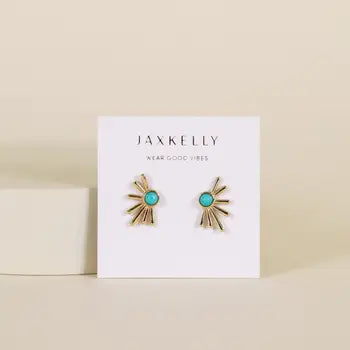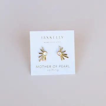 An opal stud set inside an organically shaped sun ray. The Opal Sun Ray looks beautiful on it's own or stacked with your other faves.