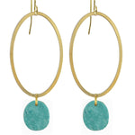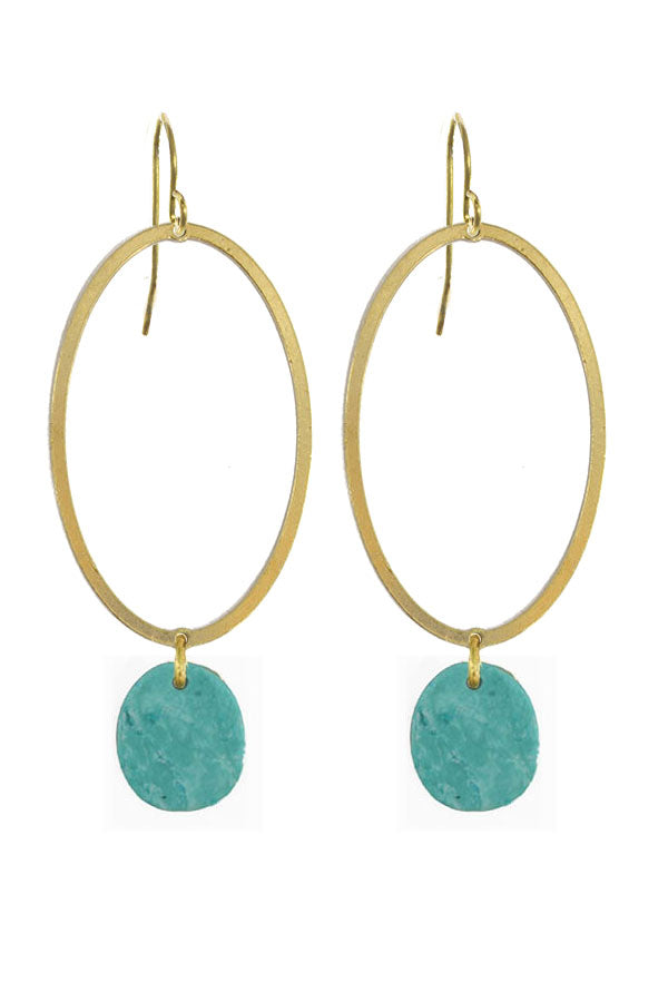 Howlite slices dangle from open brass ovals. Brass ear wires. 2.6 inches, nickel free.