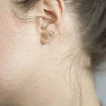 Tiny vintage brass starburst ovals.  Earrings are soldered to sterling silver posts, then polished and sealed with a clear varnish.