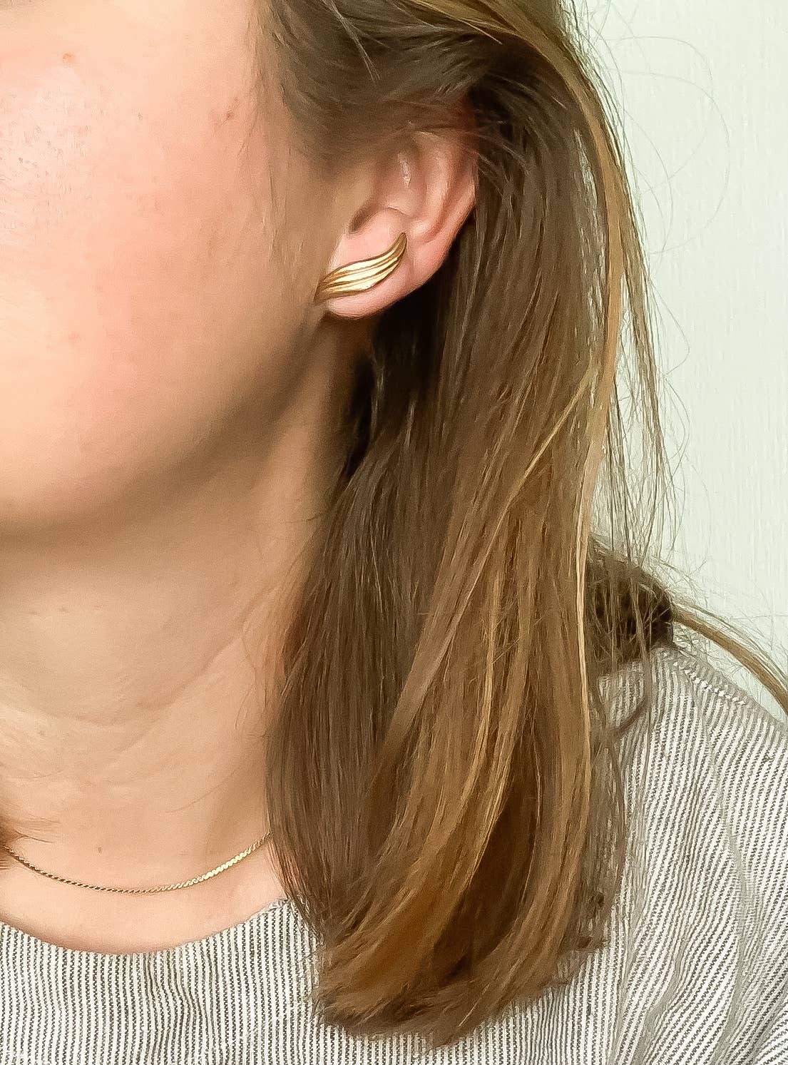 Vintage brass swirl studs with surgical steel posts. Reddish brass color. 6mm x 22mm What is deadstock jewelry? These pieces were manufactured more than 40 years ago, but never made it out of the factory.